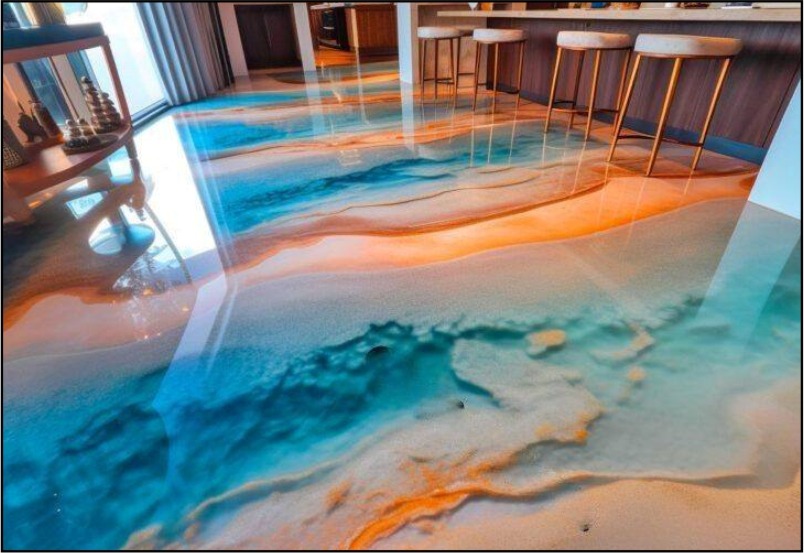 Metallic epoxy flooring is a high-end, decorative flooring system that combines the durability of epoxy resin with metallic pigments to create a 3D, glossy, and visually striking surface. Unlike traditional epoxy, metallic epoxy provides a reflective, shimmering finish that can mimic the look of marble, liquid metal, or flowing textures, giving interiors a luxurious and modern appeal.